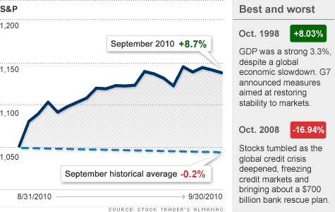 "The psychology and expectations about the economy had just gotten so depressed in August and double-dip fears were prevalent, so we got a relief rally in September when economic reports started coming out that weren't great but just weren't as bad," he said.